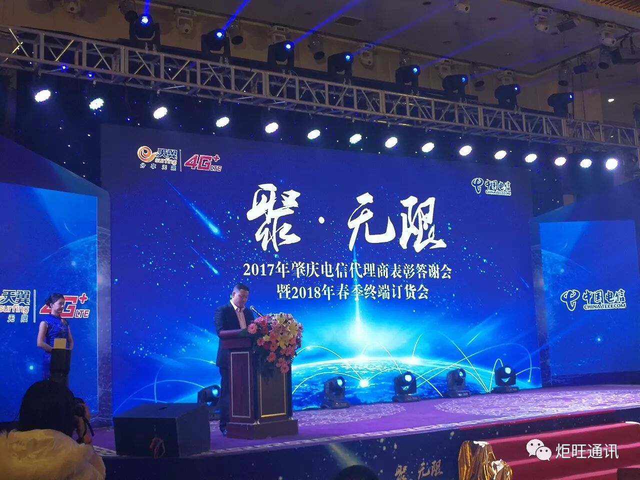 12月20日下午,主题为“聚·无限”的广东电信2017年度渠道表彰答谢会暨2018新春终端订货会在广州南丰国际会展中心朗豪酒店隆重举行。12月27日,2017年肇庆电信代理商表彰答谢会暨2018年春季终端订货会,也在肇庆隆重召开,炬旺通讯总经理官富财先生作为代理商代表,在本次大会上进行了发言。