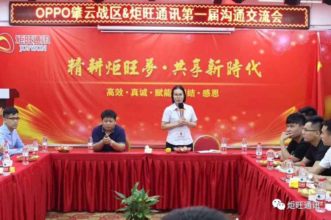 领导致词 会议上,OPPO肇云战区总经理俞总发表了重要讲话:强调了服务顾客的OPPO企业文化,重申OPPO在2018年“在一起,我帮你”的一家人指导方针,同时,对炬旺在近期取得的进步表示肯定,表示要全力支持炬旺获得更大的突破! 我司副总经理罗总对俞总的鼓励 表示了衷心的感谢,我们将全力以赴,不负众望,在OPPO的大力支持下一起共同奋战,完成目标。