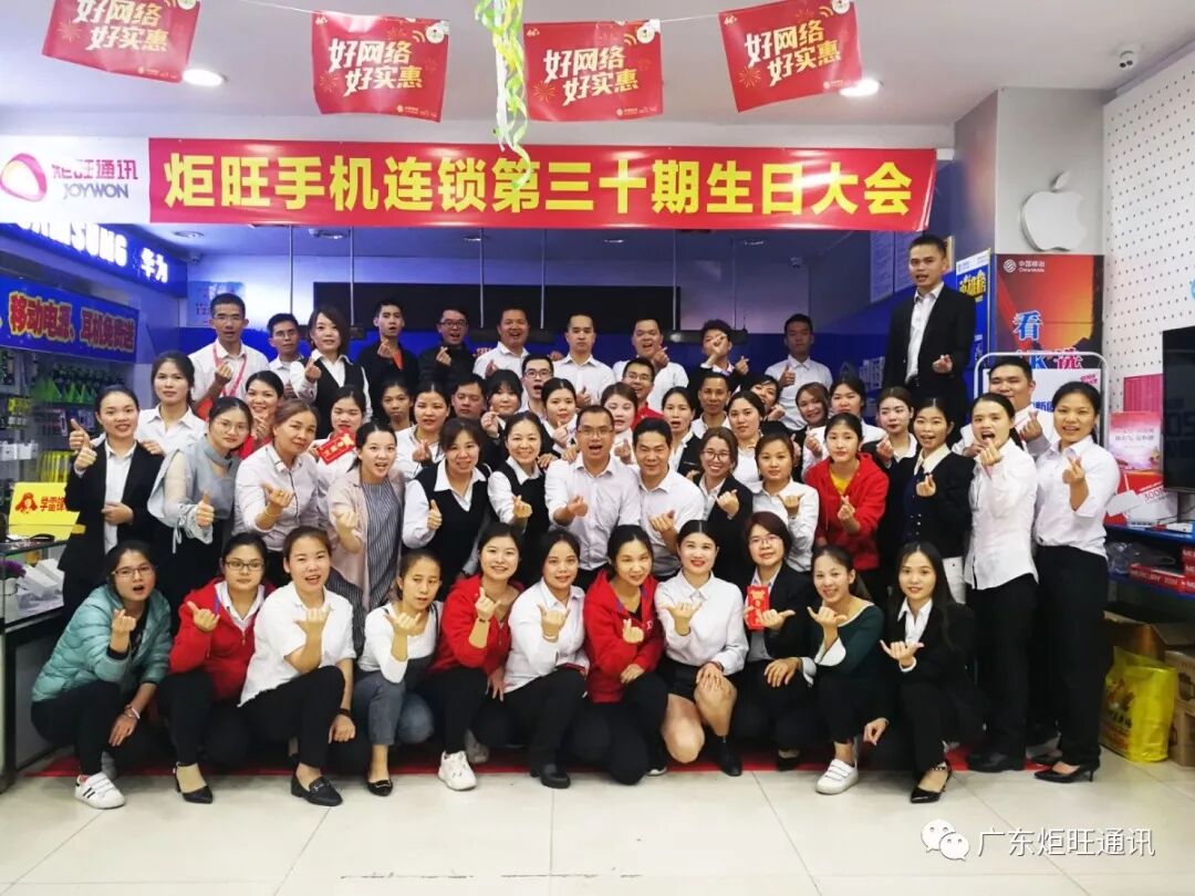2019年3月19日,炬旺手机连锁第二十九、三十期生日大会顺利举行,各区域的家人们欢聚一堂,共同为1、2、3月份生日的家人们过上一个温馨和快乐的生日。