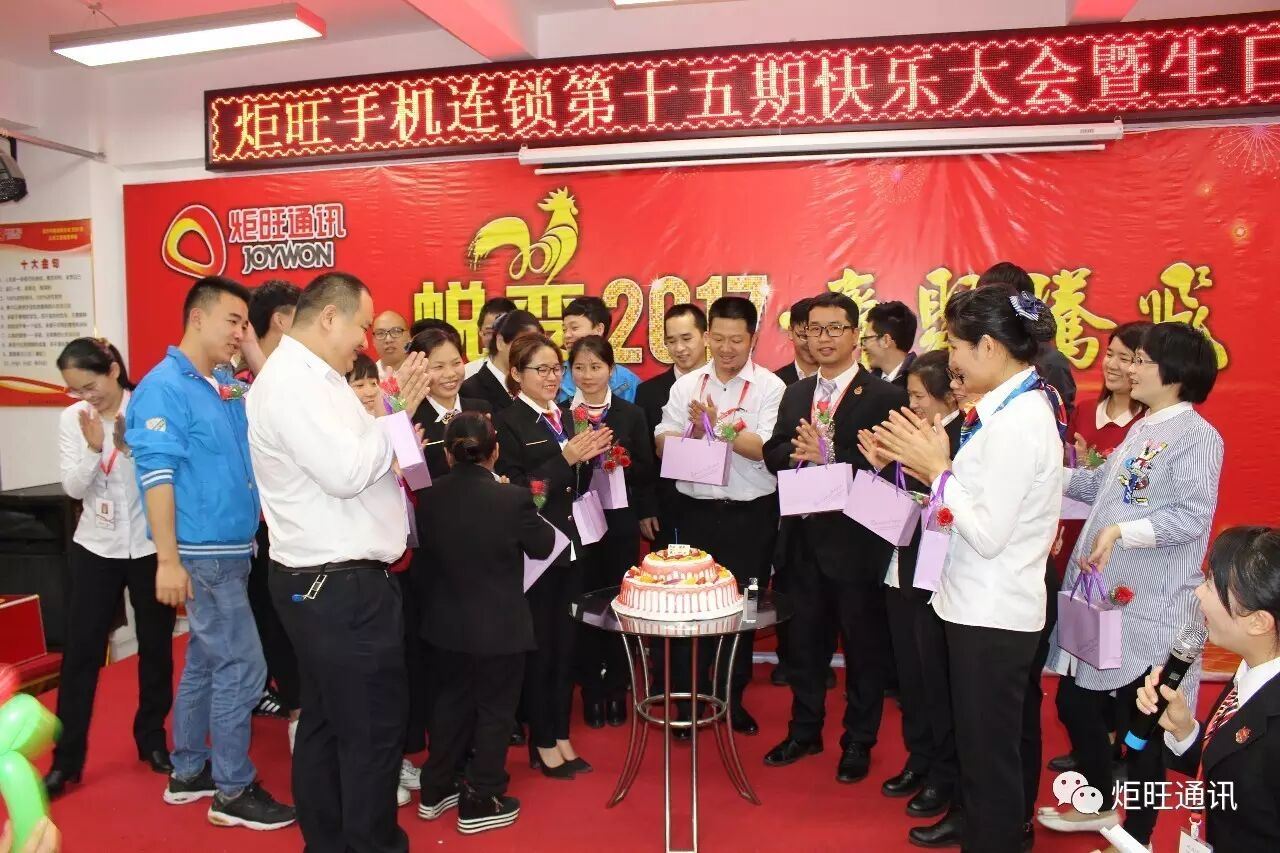 今天晚上不仅是我们的快乐大会,同时也是我们总经理官富财和副总经理黄剑标的生日及12-3月份家人们的生日会,官总和大家一起许愿、吹蜡烛、切蛋糕,最后给大家送上了一份贴心的生日礼物!