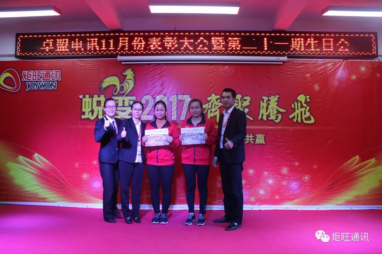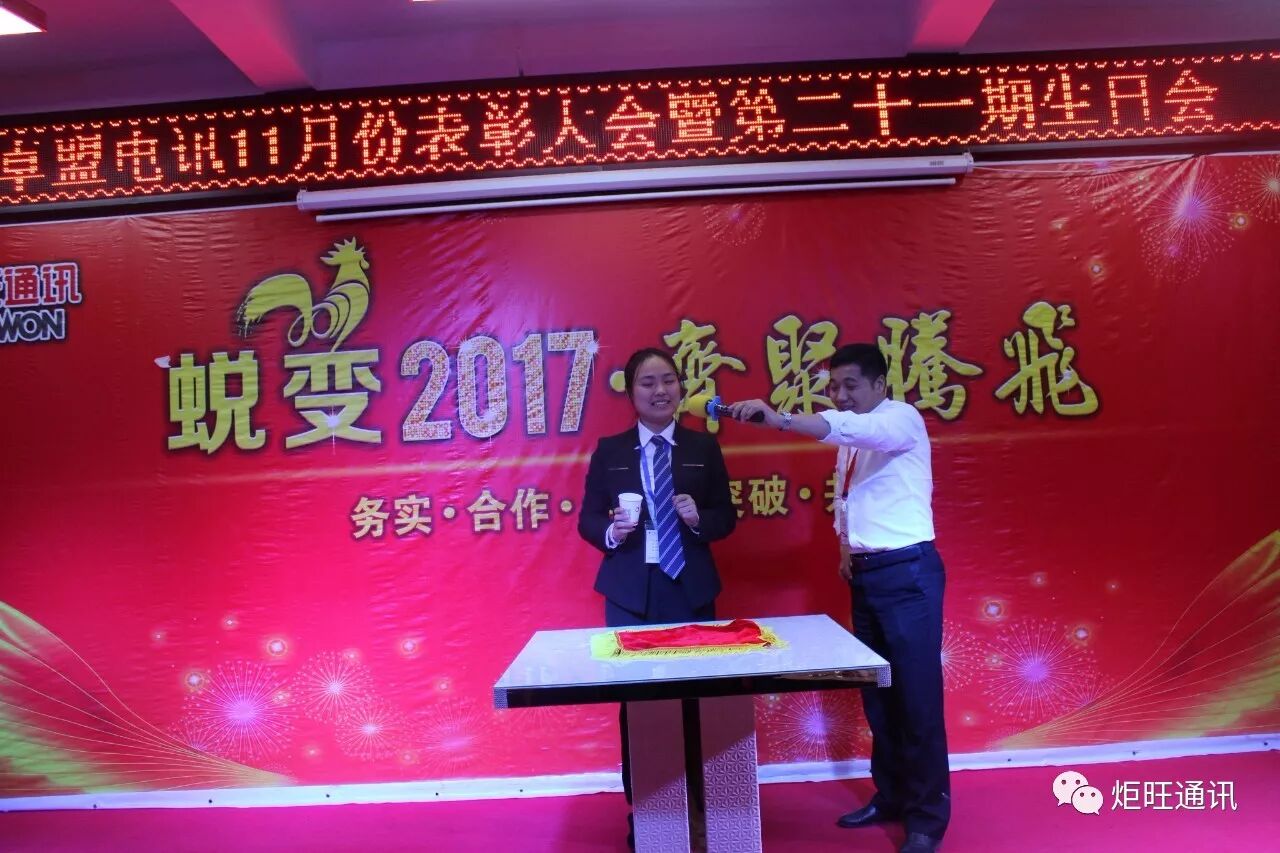 高新区生日会大合照 卓盟电讯生日会大合照 端州、高要、新兴生日会大合照 欢声笑语的生日会终于圆满落了帷幕,在这短短的几个小时里,有欢笑,有收获,每个人都对炬旺充满了信心,对未来充满了信心!在2017年的最后一个月里,希望在接下来,大家全力以赴,突破自己,达成自己目标!