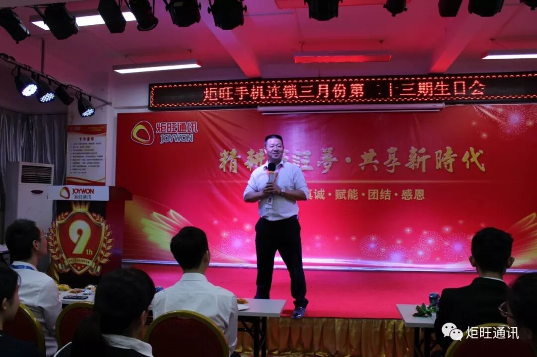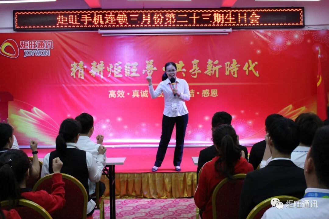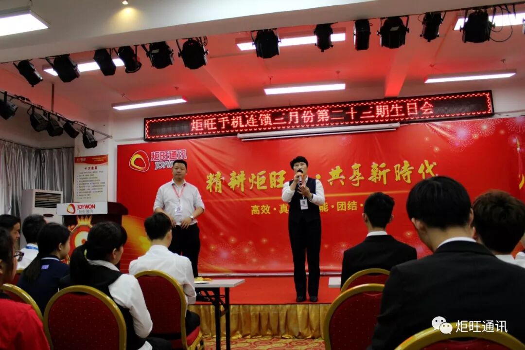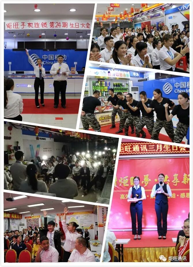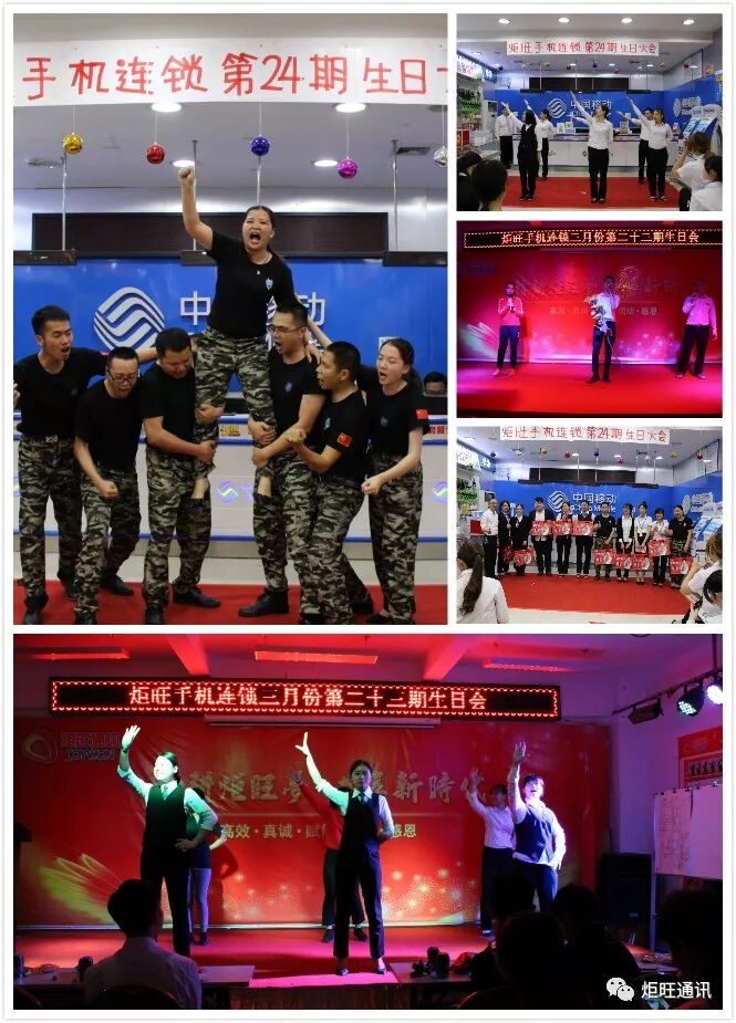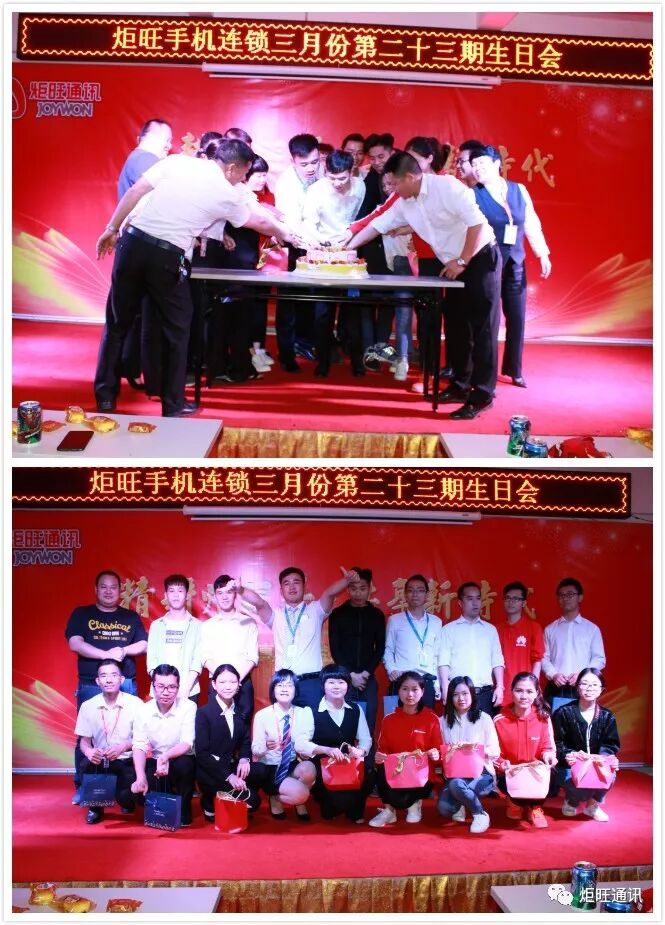 2018年3月28日-29日,炬旺手机连锁第二十三、二十四期生日大会顺利举行,炬旺通讯各区域的家人们欢聚一堂,共同为1、2、3月份生日的家人们过上一个温暖和快乐的生日。 生日会上,各位领导发表精彩致辞,为家人送上了美好的祝福,同时也强调2018年是一个共享的新时代,我们在工作上要做到精耕细做、高效团结,为人处事方面要做到真诚、赋能、感恩。公司总经理官富财先生则表态:2018年,将加大力度为家人提供更多的学习机会,提升大家的综合素质。并不断完善薪酬体制,给予家人更好的保障及激励,让兄弟姐妹们在这公开、公平、公正的炬旺平台上,发挥才能,找到属于自己的一片天地。最后,官富财总经理要求各级干部务必做到以身作则,言出必行,做好模范带头作用,努力拼搏,共创美好未来。 欢乐开场,精彩不断 (上下滑动查看生日会精彩瞬间) 精彩节目为大家带来惊喜和欢乐! 祝生日的家人们生日快乐 大合照 Happy birthday 生日会在大家的欢声笑语中逐渐接近尾声, 带给大家美好的回忆! 感恩在最好的时光里与大家相遇, 快乐工作,快乐生活, 共同成长! 祝寿星们生日快乐! 心想事成!