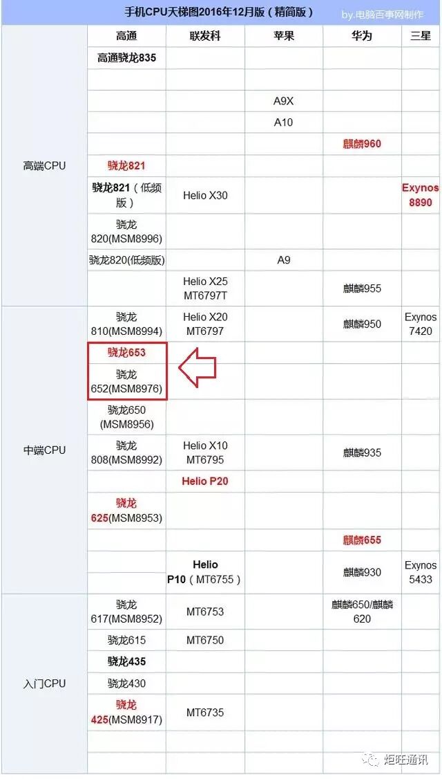| CPU型号 | 高通骁龙652(64位八核) | 高通骁龙653(64位八核) |