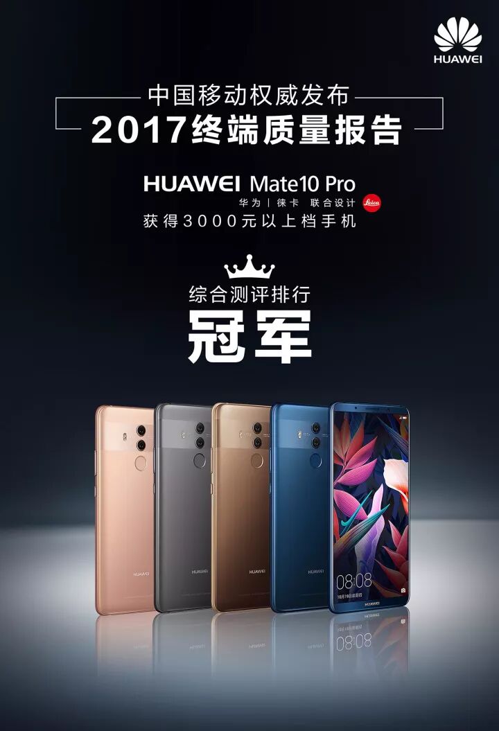 近日,2017年中国移动全球合作伙伴大会发布了《中国移动2017年终端质量报告》,从多个角度披露了终端质量数据。华为手机在整机性能、芯片、拍照等多维度均表现出色,一举夺得两项第一。其中,商务旗舰HUAWEI Mate 10 Pro占据《手机综合评测排行榜》3000元以上价格段排名第一的位置,人工智能芯片麒麟970则拿下芯片评测第一,华为手机的产品口碑与影响力再次攀升。