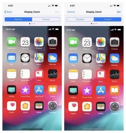 最近9to5Mac发现,在iPhone XS Max上“显示缩放”回归了,可能是由于屏幕太大的缘故。所以有需要的Max用户,可以在<span data-raw-text="" "="" data-textnode-index="1" data-index="207" class="character" style="margin: 0px; padding: 0px;">"设置<span data-raw-text="" "="" data-textnode-index="1" data-index="210" class="character" style="margin: 0px; padding: 0px;">"应用下的<span data-raw-text="" "="" data-textnode-index="1" data-index="215" class="character" style="margin: 0px; padding: 0px;">"显示和亮度<span data-raw-text="" "="" data-textnode-index="1" data-index="221" class="character" style="margin: 0px; padding: 0px;">"和<span data-raw-text="" "="" data-textnode-index="1" data-index="223" class="character" style="margin: 0px; padding: 0px;">"视图<span data-raw-text="" "="" data-textnode-index="1" data-index="226" class="character" style="margin: 0px; padding: 0px;">"中打开<span data-raw-text="" "="" data-textnode-index="1" data-index="230" class="character" style="margin: 0px; padding: 0px;">"显示缩放<span data-raw-text="" "="" data-textnode-index="1" data-index="235" class="character" style="margin: 0px; padding: 0px;">"。标准在屏幕上显示更多内容,缩放显示更大的内容控件,显示缩放使更大的点击目标在屏幕上的显示更清晰。