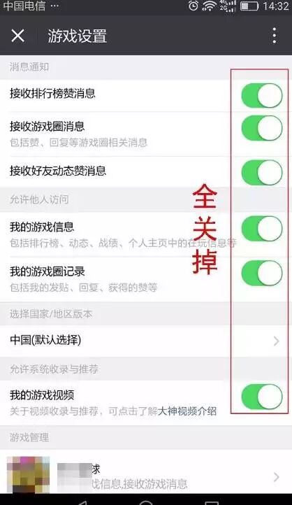 进入微 信【设置】-【发现】-【游戏】,点击右上角的【设置】图标,把一堆默认接收消息的通知全部关闭!