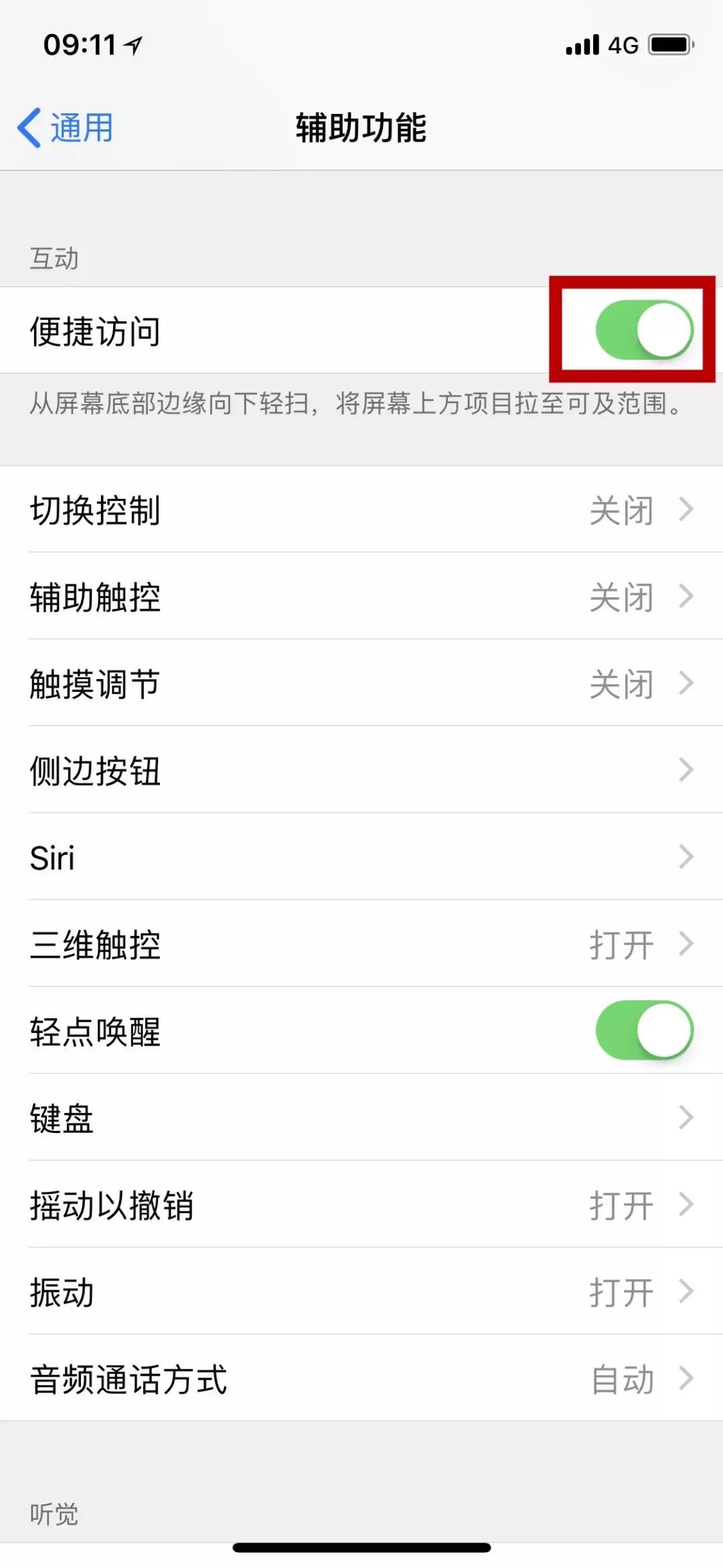 iPhoneX上如何开启单手模式? 单手模式在在iPhoneX上是默认关闭的,所以你想使用需要设置中先将【便携访问】打开; 首先在设备上点击“设置-->通用-->辅助功能” 在辅助功能中将“便捷访问”功能打开 iPhoneX上如何启动单手模式? 在设置中开启这个功能后,启动方式是在屏幕底部边缘下滑,显然新的启动方式更为方便自然。 如果你在使用便携访问的时候想访问通知中心和控制中心,从屏幕中间下滑就可以了。