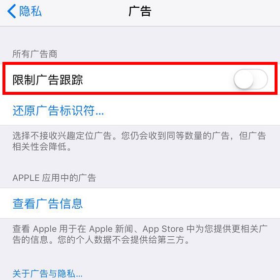 如果觉得很讨厌,点开设置,在隐私选项找到广告一栏,里面有限制广告跟踪选项,开启就好啦。