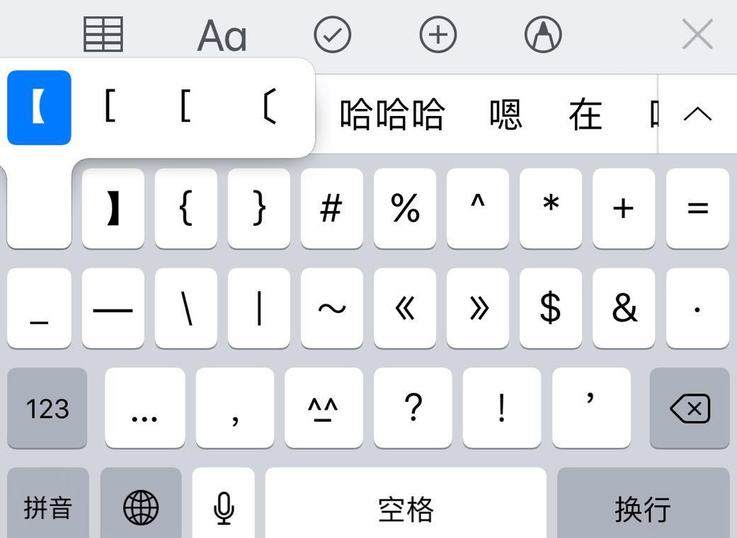 想要输入特殊符号,同样只要长按中文键盘里的符号。