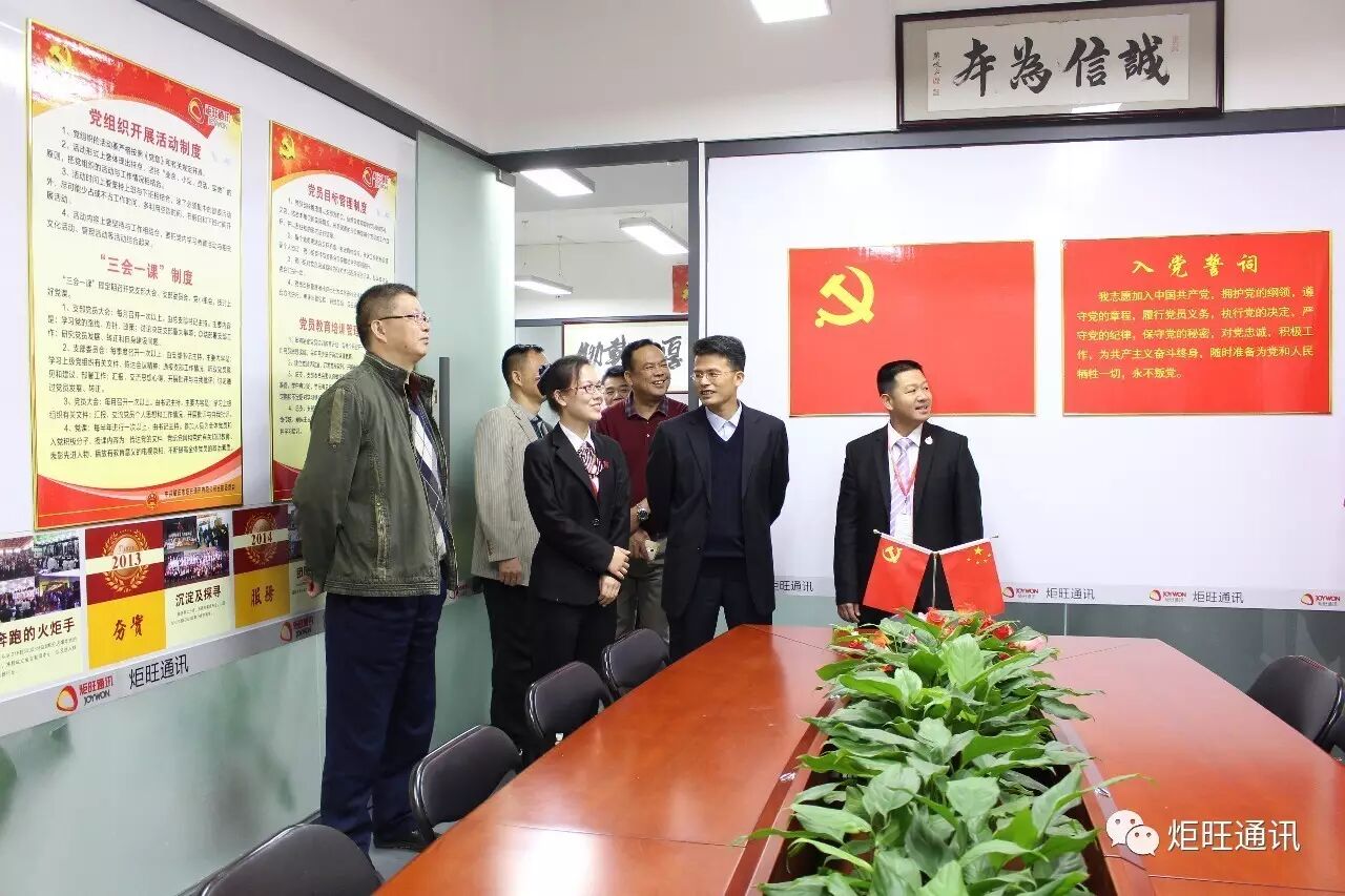 在现场调研和听取汇报后,市工商局冼以良局长对我司将党建工作及企业文化融入企业发展的工作模式予以肯定和表扬。王建良副局长对我司将企业文化与员工家属连在一起,关怀员工家属,让员工有归属感表示认同和赞赏。市工商局领导鼓励我们继续实干兴企,创新发展,继续弘扬社会正能量及传统文化,把党建工作深入人心,为高新区“小个专”党建工作起到模范带头作用。