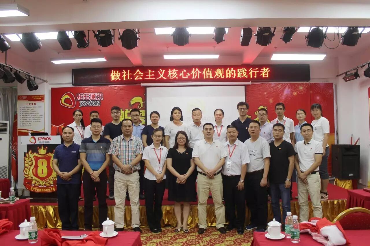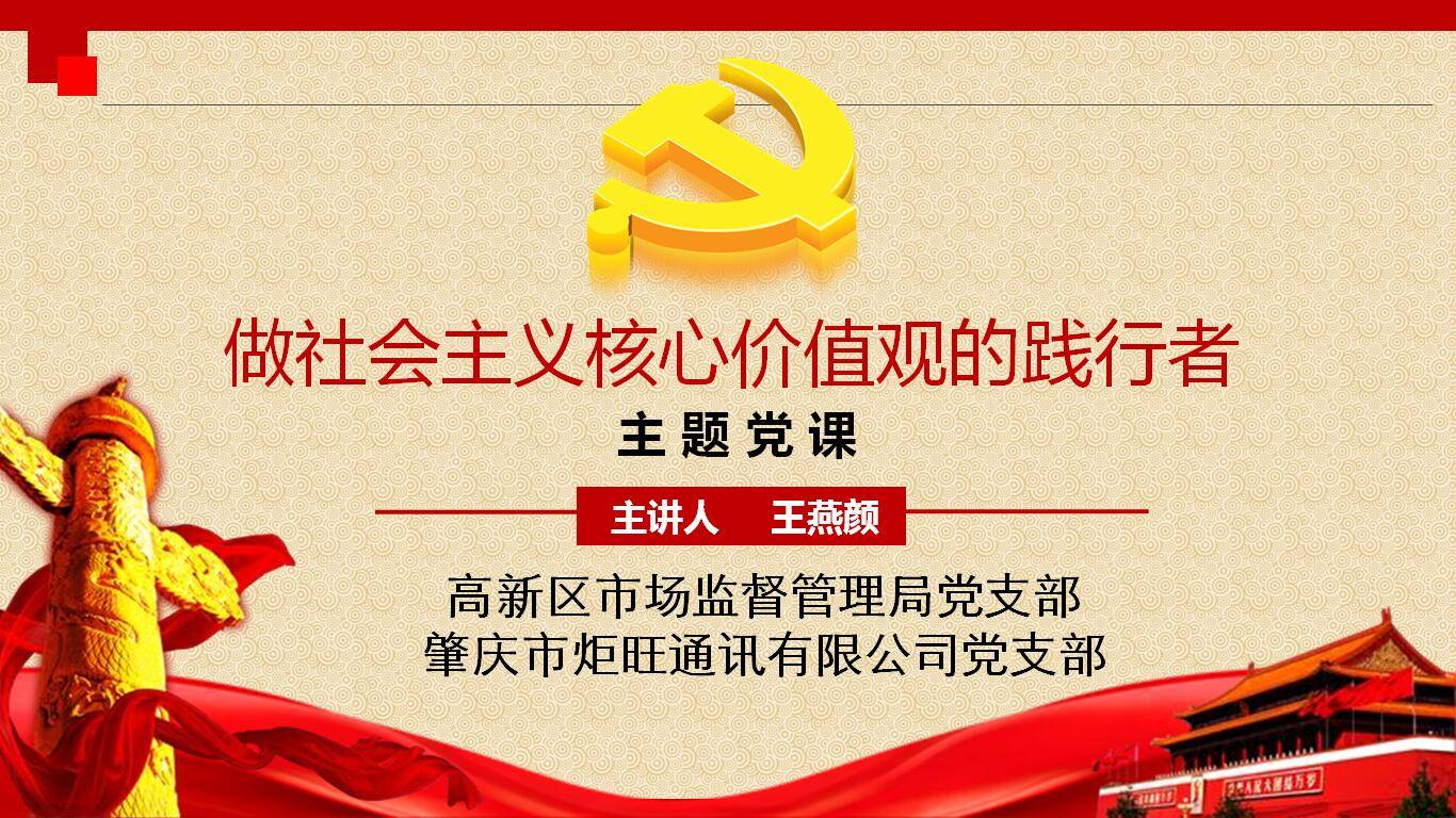 6月22日,高新区市场监督管理局《做社会主义核心价值观的践行者》主题党课在肇庆市炬旺通讯有限公司党支部活动室举行,区市场监督管理局王清局长、蒋志宁副局长、炬旺通讯有限公司官富财总经理、党支部书记黄蓓女士等领导同双方党支部全体党员及入党积极份子一起认真参加了本次学习。