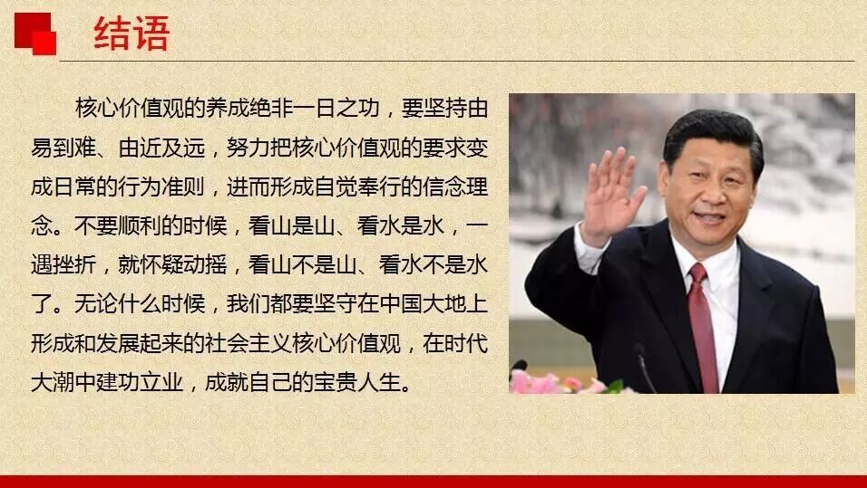 通过本次学习,我们了解到培育和践行社会主义核心价值观不能只停留在口头上,而是要体现在实际的行动中,这样才能真正发挥其作用。我们会积极引导党员、干部、员工的思想观念、价值取向和社会行为,促进社会公德、家庭美德、职业道德和个人品德的提升,以社会主义核心价值观为导向,内化于心、外化于行,立足本职岗位,再接再厉,工作更上一步新台阶。