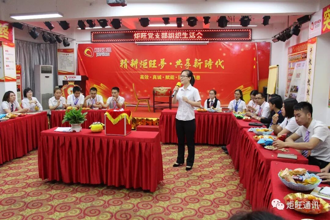 2018年5月3日,在炬旺党支部的筹备下组织生活会如期举行,党支部书记黄蓓及副总经理肖泽容组织并主持了本次会议。有支部党员、预备党员、入党积极份子及店长以上的领导干部共43人参加了本次组织生活会。会议以查问题、找原因、解决问题、批评与自我批评为主题,通过沟通会的形式让大家把在工作、生活中遇到的问题和困难,以及对公司的建议在这里畅所欲言,同时相关部门和领导也及时对问题进行反馈和解决,营造了开诚布公的会议氛围。