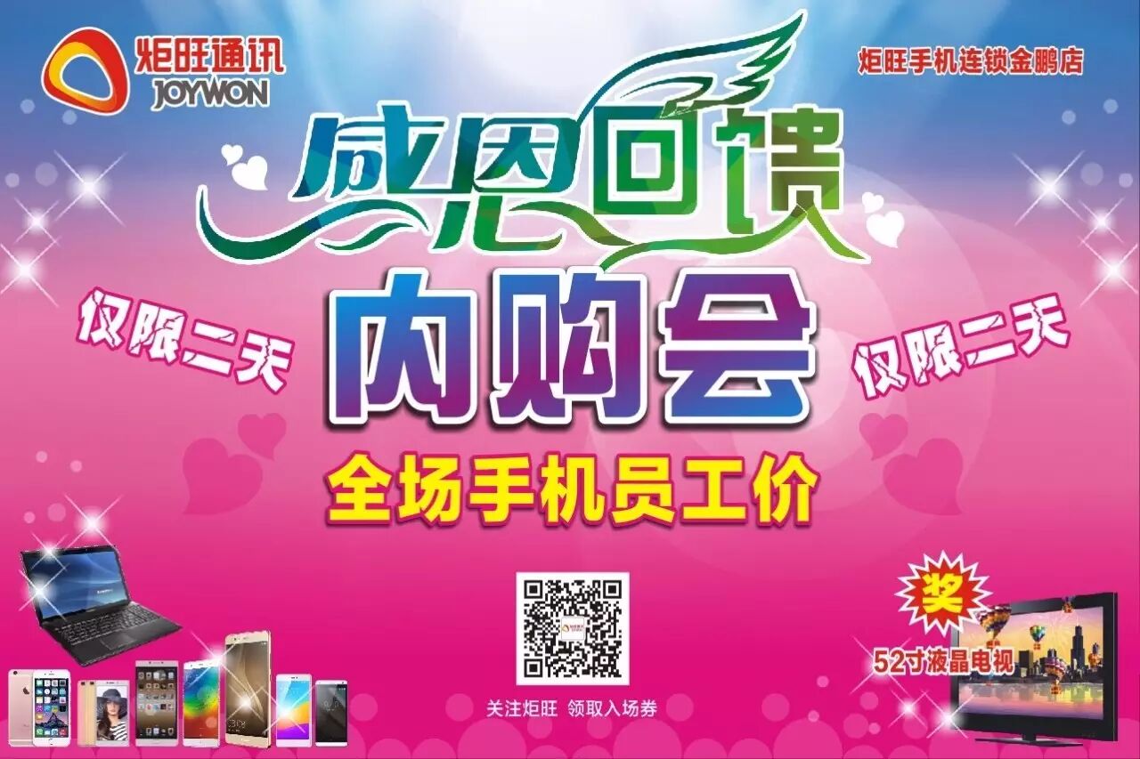 活动地址:肇庆市高要南岸南兴二路新金鹏购物广场首层炬旺通讯