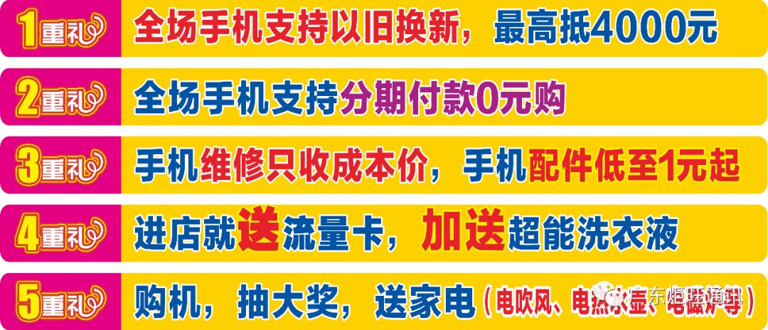 炬旺通讯各大门店 优惠活动陪你过中秋 肇庆高新区 中国移动·炬旺政德营业厅:肇庆市大旺高新区政德大街华莱士旁边 电话:0758-3132888 购机多重豪礼等着您 肇庆广宁区 云浮新兴 👇 双节到炬旺通讯购机活动多多! 🔽🔽🔽 活动一: 双节购机 6重豪礼免费送!免费送! 1 2 3 4 5 6 活动二: 华为新品上市, 厂家优惠,最高直降500元!! 活动三: 以旧换新,焕然一新, 旧手机、旧配件也能当钱花! 活动四: 分期付款0首付0手续费, 再送豪华养生壶。 0元就能把手机带回家!还送豪华养生壶! 出门在外,没有WIFI, 想玩一把游戏都感觉流量在“倒水”! 流量不够用怎么办? 试一下我们的不限量上网卡。 活动期间再送一年免费宽带!再送大礼品! 端州区&高要区 端州·炬旺旗舰店:肇庆市端州区黄岗市场南侧综合大楼A幢首层 联系电话:0758-2701388 全场手机火爆特卖 购机送840元话费 欢迎您来选购 分期付款 0首付 0利息 以旧换新 旧手机当现金用 进店免费送话费 免费贴钢化膜 中国移动·炬旺金鹏营业厅:高要市南岸南兴二路新金鹏购物广场入口首层 联系电话:0758-6103888 双节大降价 手机最高直降2000元 话费送不停 充100元送840元话费 双节大降价 配件一元起抢购 这个中秋 炬旺通讯与您温情共度 欢迎您到炬旺通讯各大门店购物