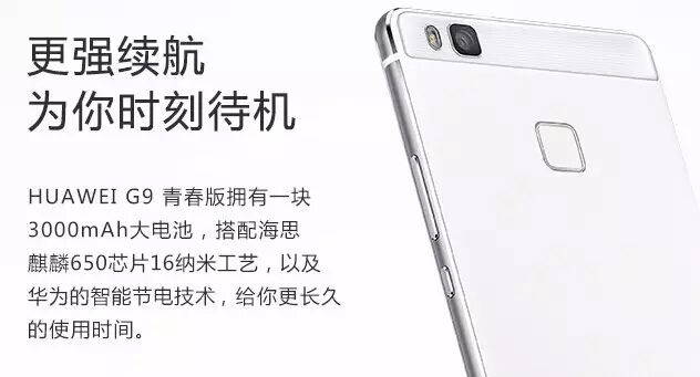 除了年轻人关注的外观、拍照等功能,HUAWEIG9青春版还为手机用户重度群体提供了更大的内存和更持久的续航能力,3000mAh电池为年轻人提供了足够的电量用来上网、通讯和娱乐。