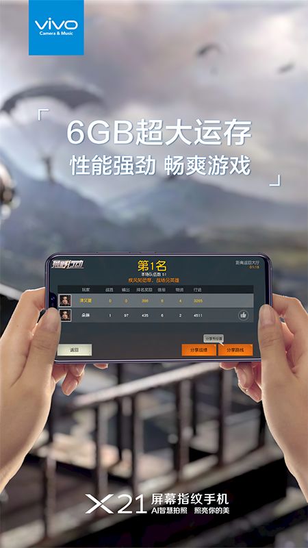 X21性能到底多强大? 就让我们带你深入它的内芯探索一番! 想要保证手机运行流畅,应用启动迅速?这很大部分取决于运行内存。 运行内存越大,你的手机就会越快,卡顿就会越小,还能够同时运行更多APP。 图片来源:手机中国 而X21配置的6GB大运存,正是满足了手机上安装大量APP的重度使用者和大型游戏玩家。 未来两年,6GB大运存仍可平均支持开启11个+后台,是流畅体验的保障。同时,由于系统不用频繁结束进程释放内存,数据全部保留在运存中,可以实现各APP之间迅速自如的切换。 把把王者,天天吃鸡。性能更强劲,游戏更畅快。 除了6GB大运存,X21还有128GB大内存加持,再也不用担心内存不足啦! 不管你是手游党,音乐控,拍照达人……都可以存下所有你喜爱的东西。 AI智能应用快速普及,如何提升AI应用的体验?高通与vivo达成战略合作,首次发布高通骁龙660 AIE。它把AI从单独的CPU计算中解放出来,提供强大的AI运算能力。 相较于使用骁龙660的机型,X21在AI应用上有更快速的响应,以及更精准的用户行为预判和指引。 基于如此强大的内芯,你可以更好的体验到智慧识屏、智慧引擎、美颜等AI带来的贴心服务。
