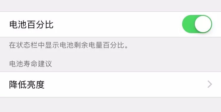 部分iOS 10系统的iPhone可能都有这个提示,只不过不是每部手机都会看到提示。比如当你的iPhone屏幕亮度过高,系统就会在【设置】-【电池】中弹出一个“电池寿命建议”,提醒你降低亮度可以提高电池寿命。