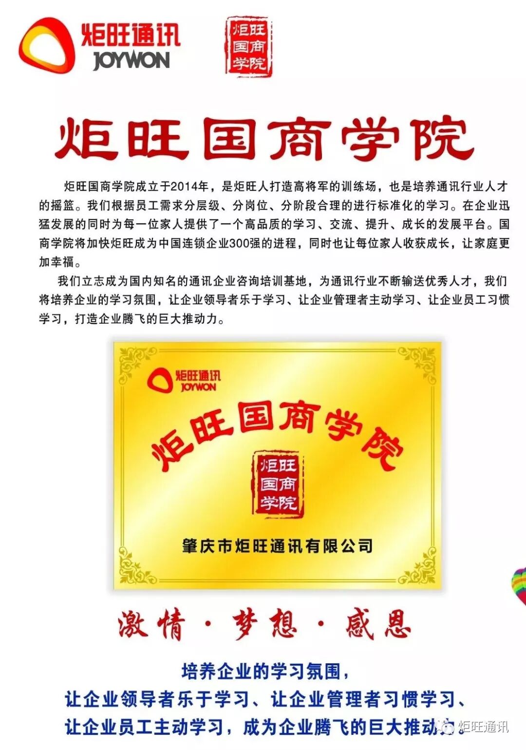 员工是企业最大的财富,他们集激情、勇敢、创造力、执行力于一身; 企业最大的成就,是将员工的梦想实现,搭建梦想的舞台。 炬旺国商学院《执行复制》唤醒员工潜能,实现企业的梦想,成就员工! 《执行复制》课程于6月8日与您相约炬旺手机连锁!本期课程还有部分对外名额!欢迎各位通讯行业精英报名参加! 【学习对象】中层管理干部、基层员工 【开课地点】肇庆市高新区—炬旺手机连锁总部多功能厅 【课程时间】2018年6月8日—6月10日(2天室内学习、1天手机门店实战) 【咨询电话】 刘院长18820365588 向老师18820361988 【课程的三个特点】 课程价值 1、打造手机店面员工工作激情、责任心、主动做事,不找任何理由,永远遵循“团队是我,我是团队;我不行就是团队不行,团队不行就是我不行;团队有一个人没做好,就是我没做好”的理念投入工作。 2、培养员工主动承担责任、相互协作、相互信任与团队凝聚力。 3、提升员工工作状态、积极性、创造力,留住企业核心员工。 4、手机门店销售实用技巧和实战应用,如何创造业绩。 5、拓客系统实战应用。 6、培养员工自主思考的能力,唤醒员工内心的巨人,相信自己。 课程收益 1、让每一位公司员工珍惜工作,将自己的职业生涯发展与公司的发展壮大密切结合起来, 成为优秀员工,让个人与企业共生存、同命运、感谢企业、感谢老板常怀感恩之心做事; 2、在日益竞争激烈的通讯行业、严峻的竞争态势下,要每一位公司员工了解行业竞争对个人职业生涯的影响,学会规划人生、提升自我,只有公司的成功才会带动个人价值的提升! 3、培养员工自主思考的能力,激发员工热情工作的激情、激发员工对公司的荣誉感、使命感。 一切业绩的产生都源于学习---没人知道发生了什么?如果你想知道就来课程探索! 往期 精彩 课程